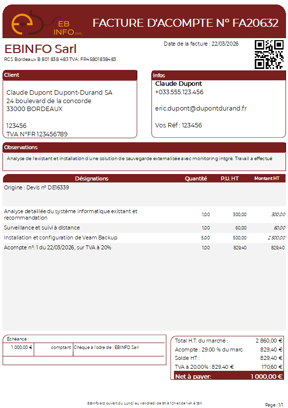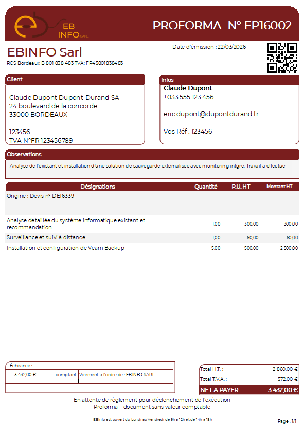 La proforma permet de demander un règlement avant démarrage, tout en distinguant clairement ce document d'une facture comptable.
