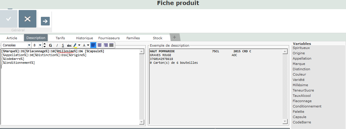Spiritu permet de qualifier précisément chaque produit avec les informations utiles à l'activité : origine, appellation, distinction, couleur, millésime, alcool, flaconnage, conditionnement, palette, capsule et bien plus encore.